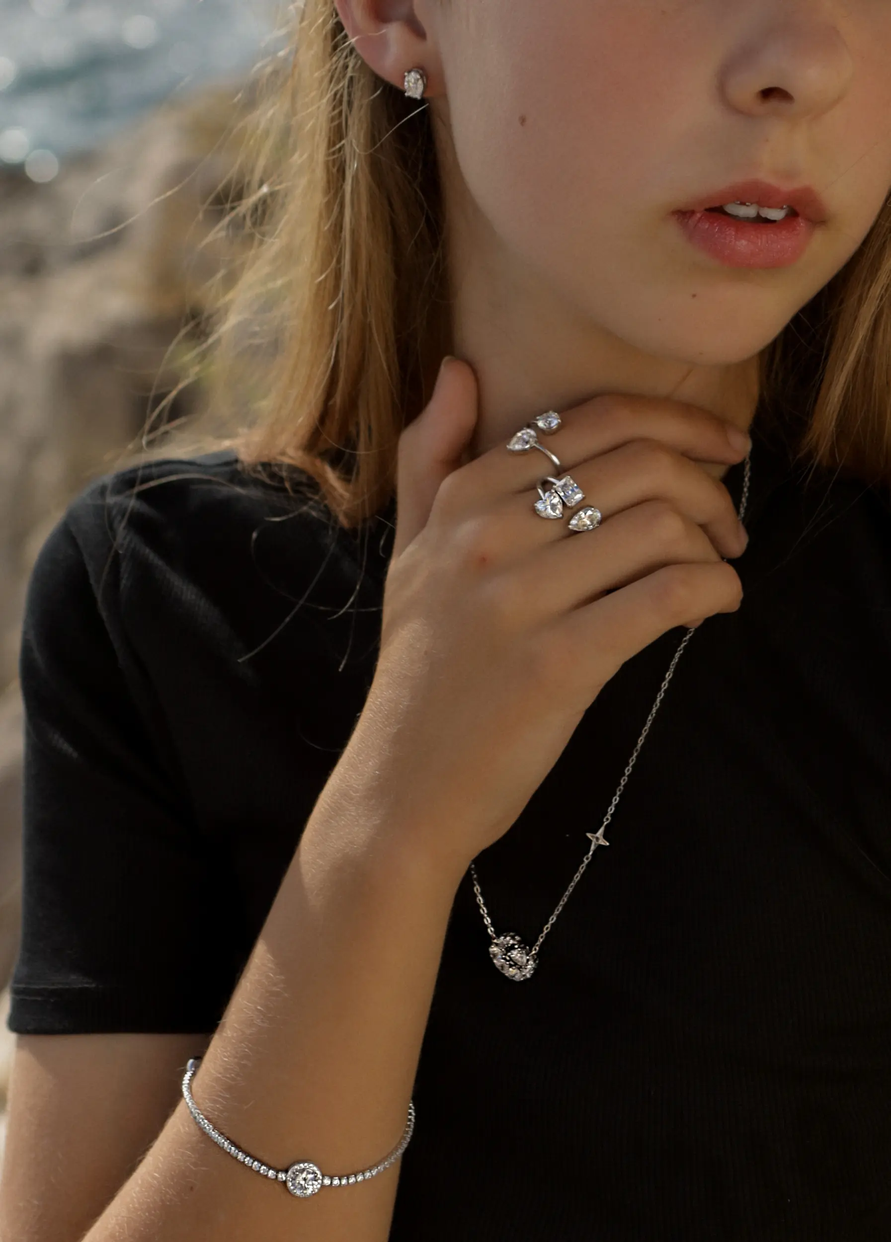 Each stone speaks a different truth: the sharp clarity of intellect, the deep softness of the heart, the instinctive pull of intuition. Together, they form a sacred geometry — the architecture of a woman who is beyond definition. Singular. Uncompromising. Whole.