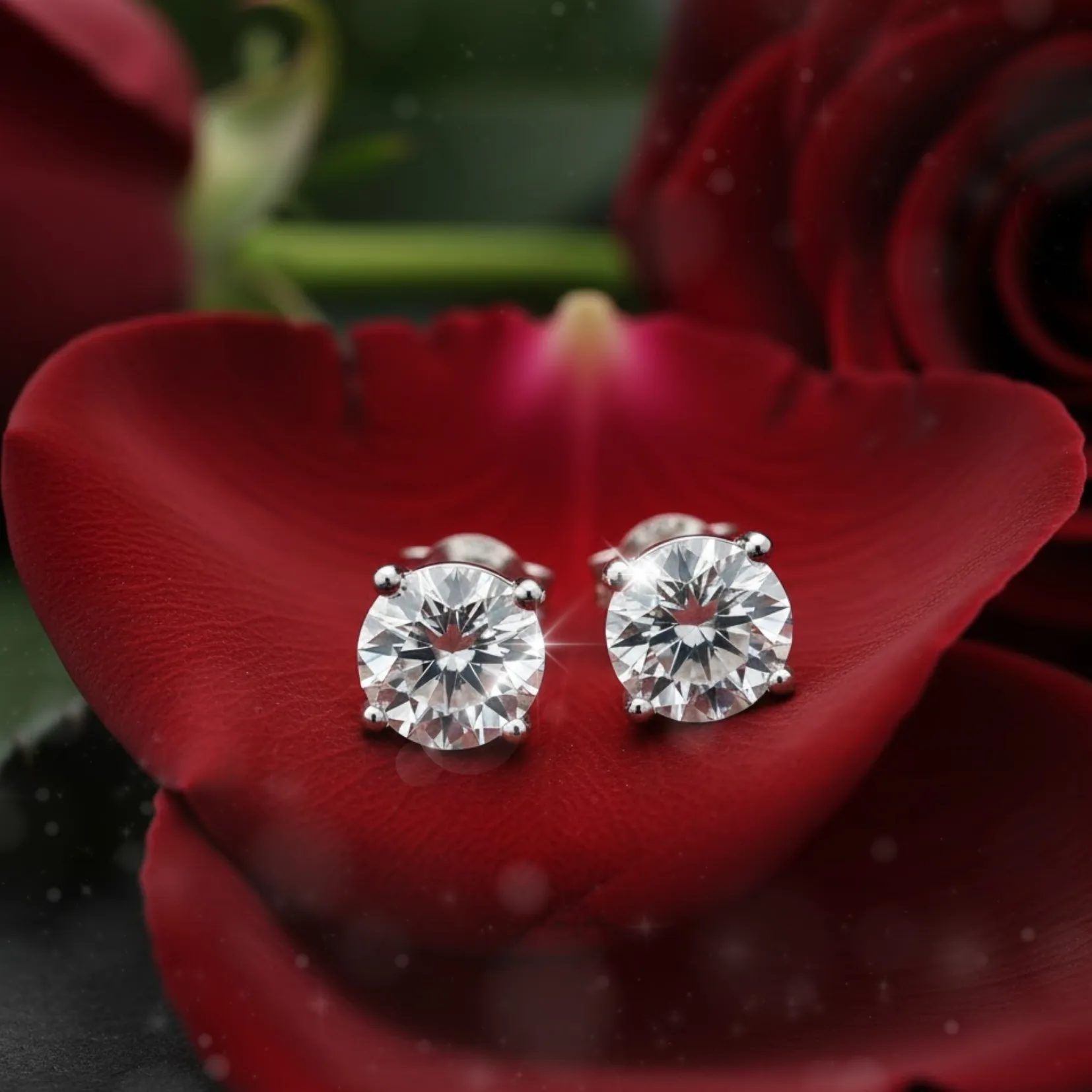 Deux pierres de laboratoire d’un carat, pures et parfaitement taillées, captent la lumière avec une délicatesse assumée.