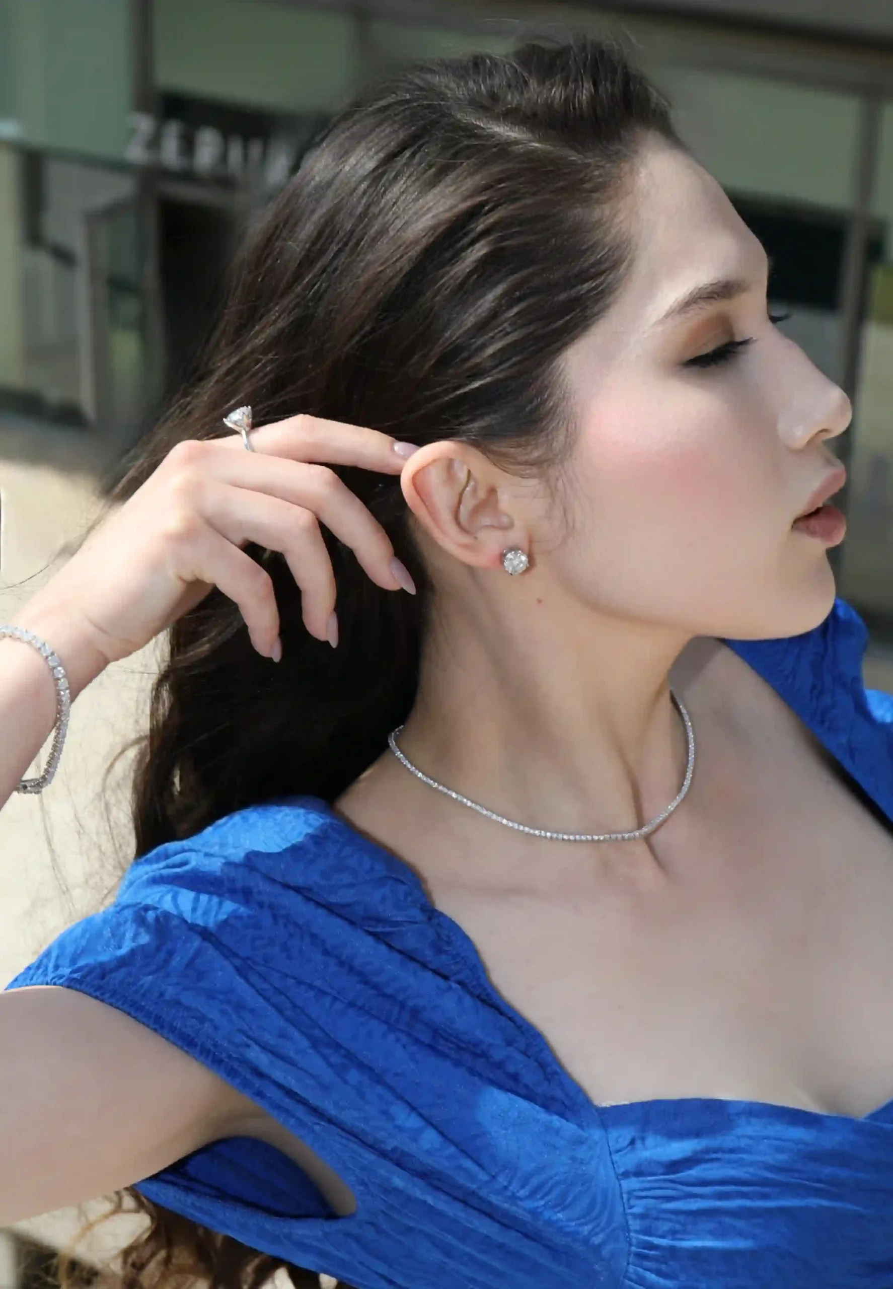 Composé de pierres de 0,3 carat au diamètre précis de 2 mm, le collier incarne une rigueur joaillière d’exception. Chaque pierre est taillée avec une maîtrise absolue, calibrée à la perfection, puis alignée en une ligne continue d’éclat pur. Il en résulte un flux lumineux rare, maîtrisé, hypnotique — surpassant par sa brillance les diamants naturels les plus exclusifs, et exprimant une vision du luxe résolument moderne et conscient.