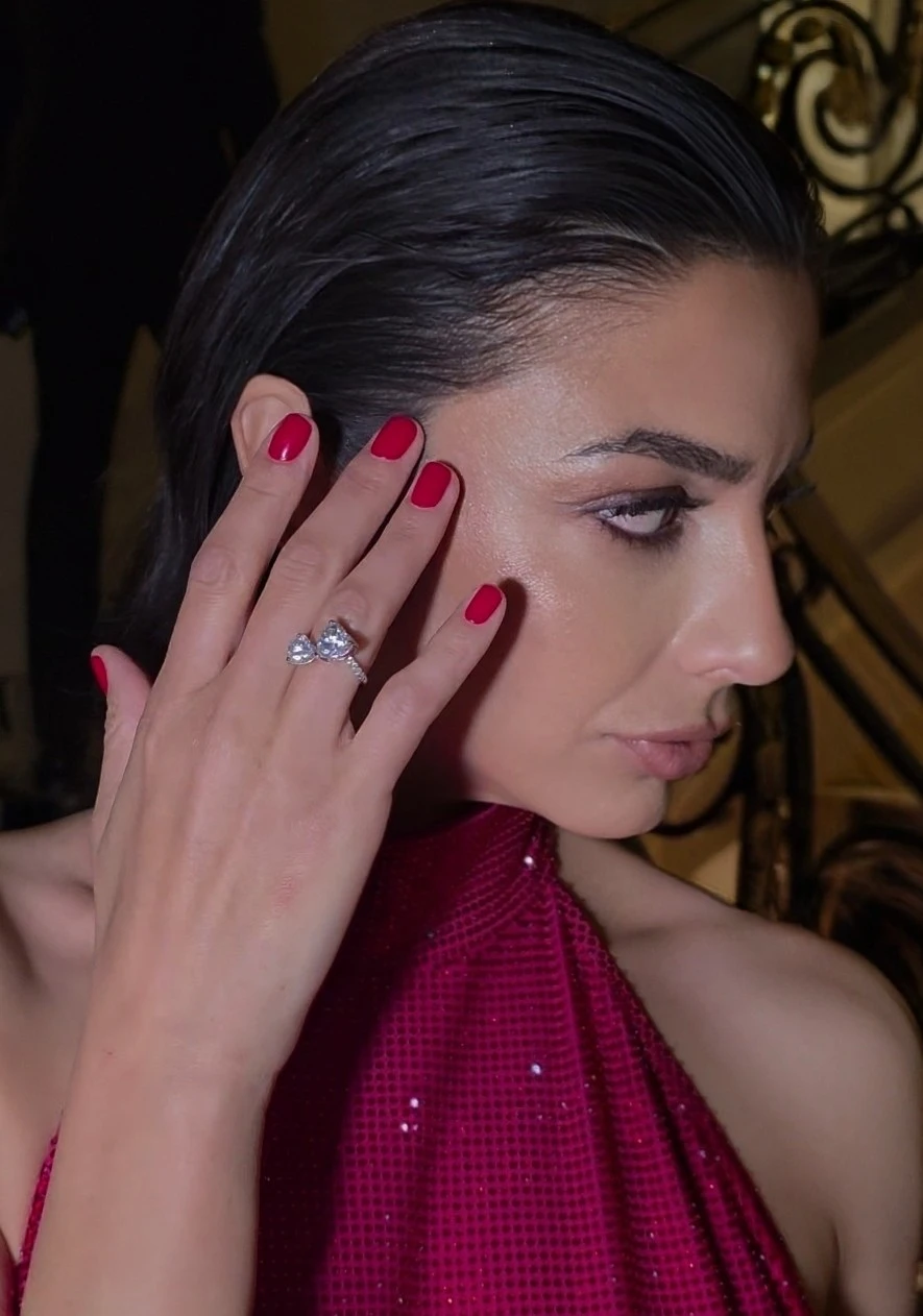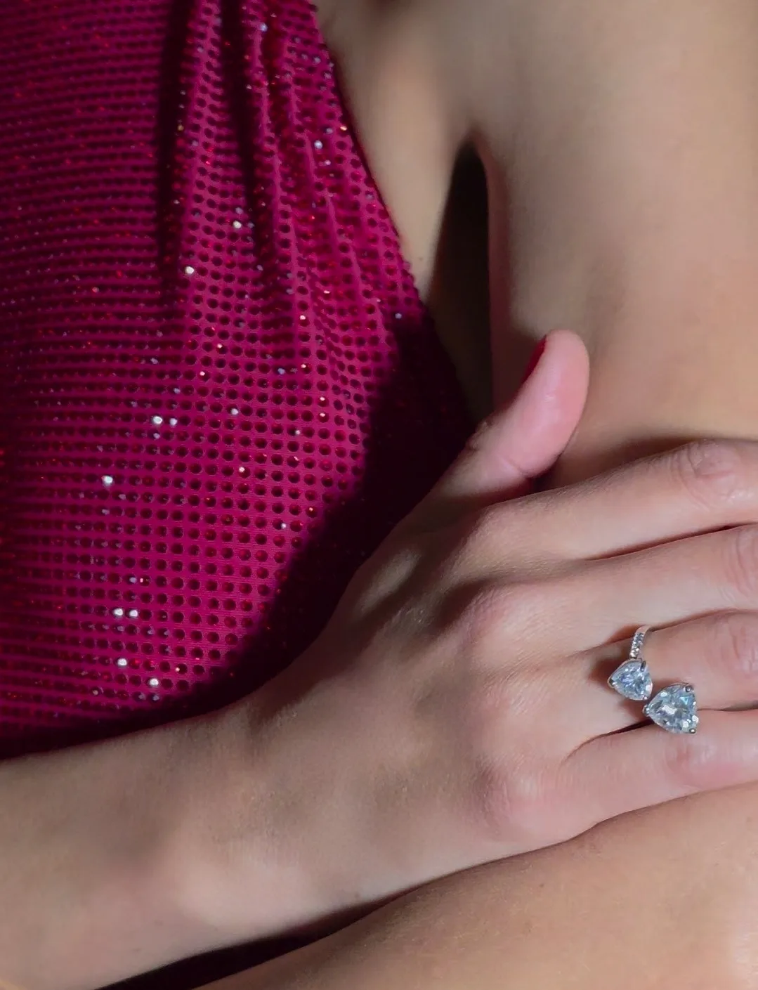 Two heart-cut love-grown stones — 2 carats and 4 carats — facing each other in a perfect collision. Not mirroring, but magnetizing. As if love itself had been carved into stone, twice, and set into a ring with the audacity of high fashion and the precision of haute joaillerie.