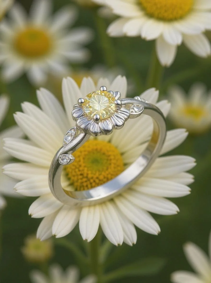 Inspirée par la délicatesse de la nature en éveil, la bague Flora célèbre l’harmonie entre l’art et la terre. Au cœur de son design raffiné brille une pierre de laboratoire exclusive, d’un éclat champagne rare et subtil, 0.5 carat de lumière capturée.