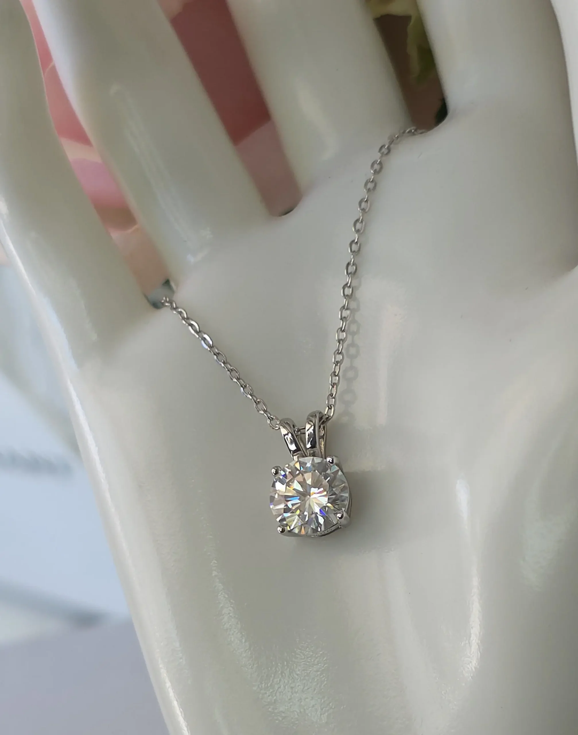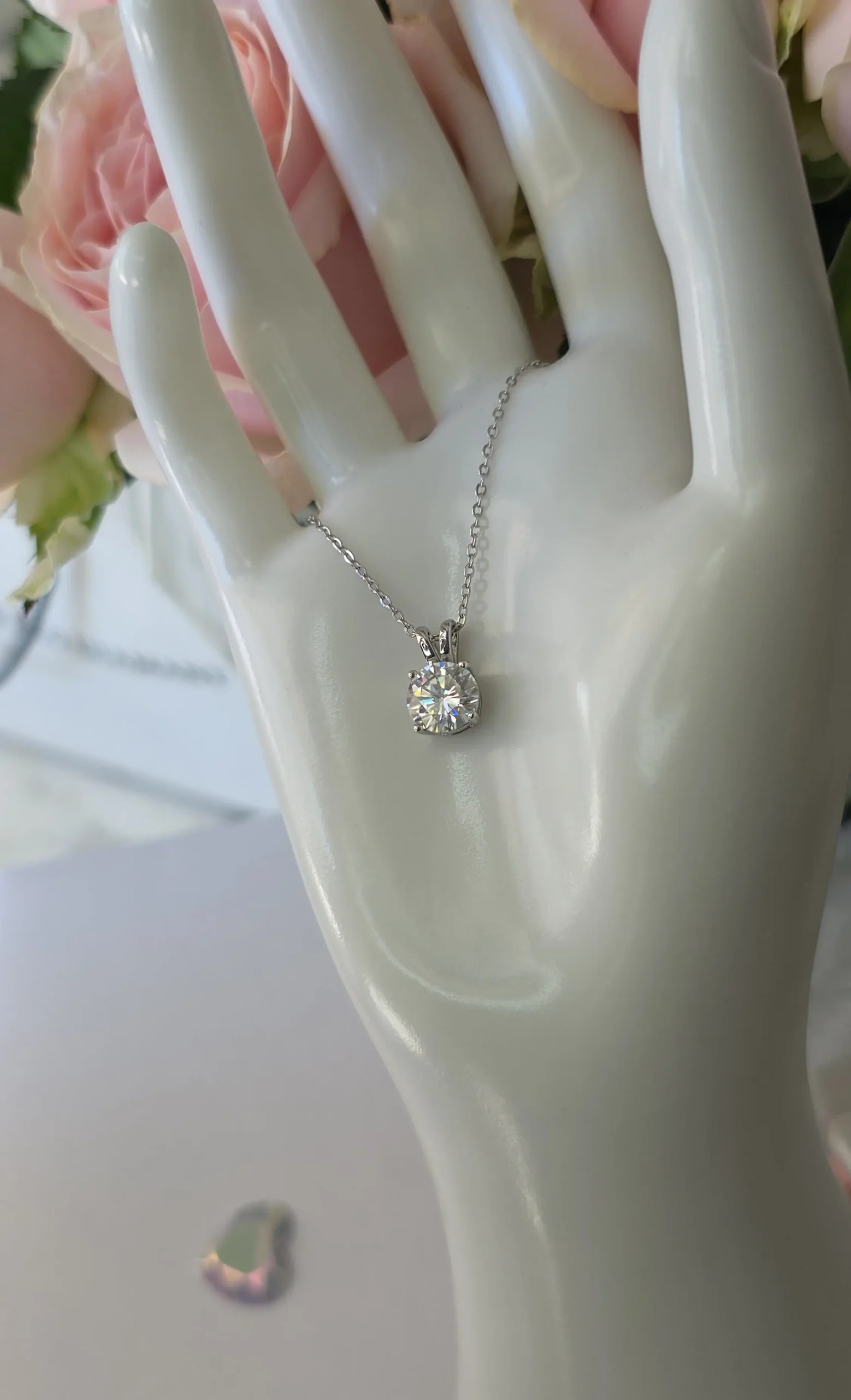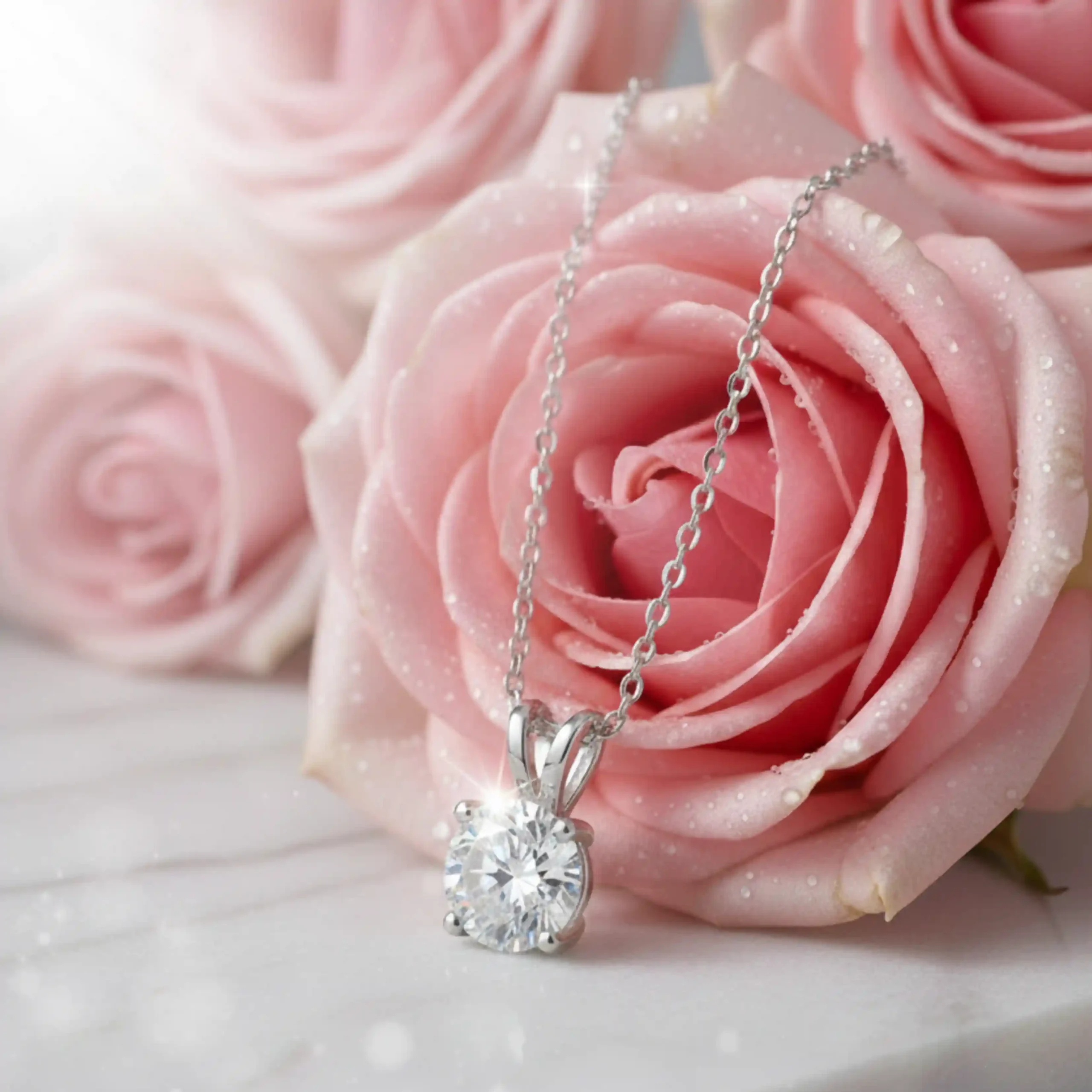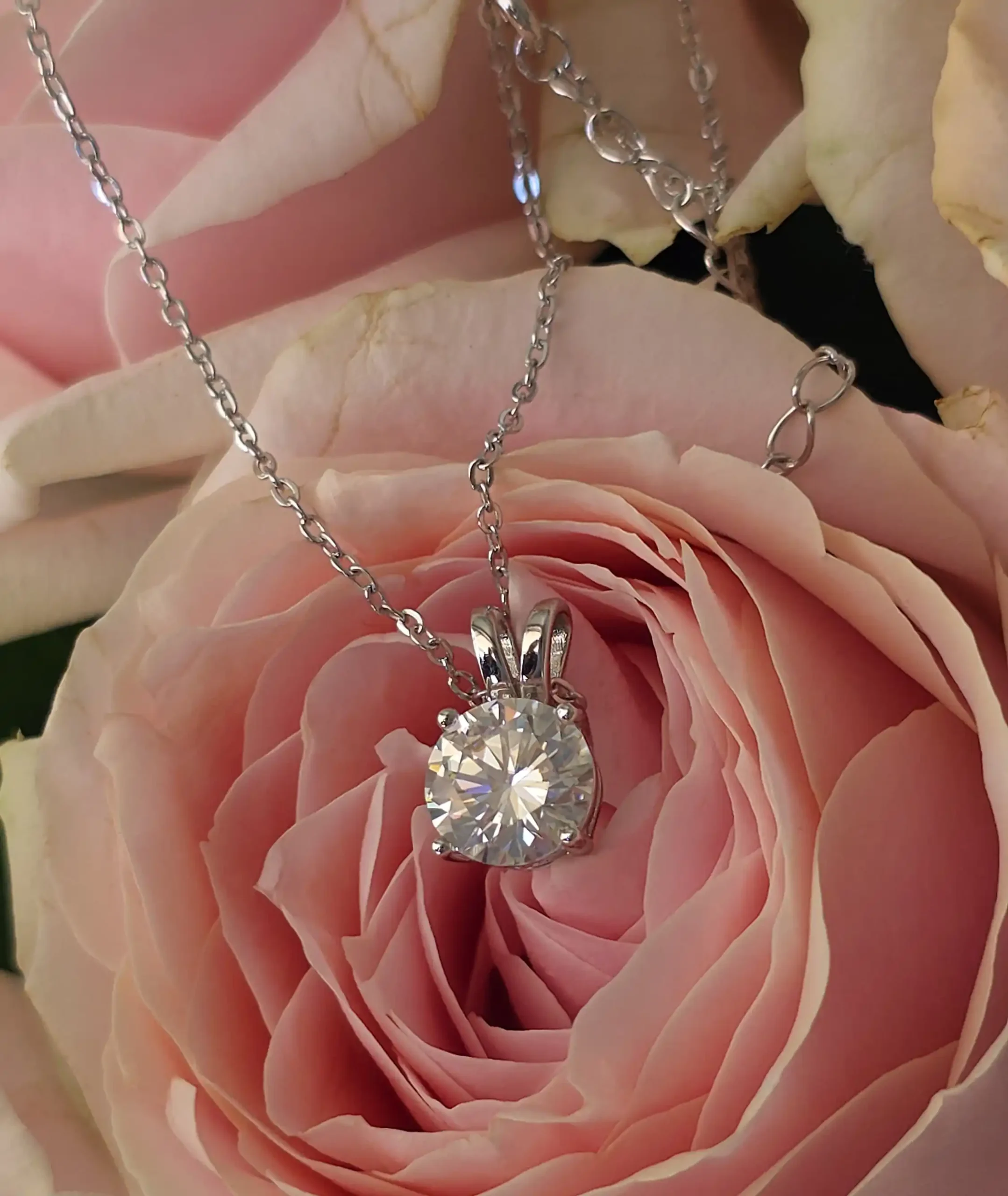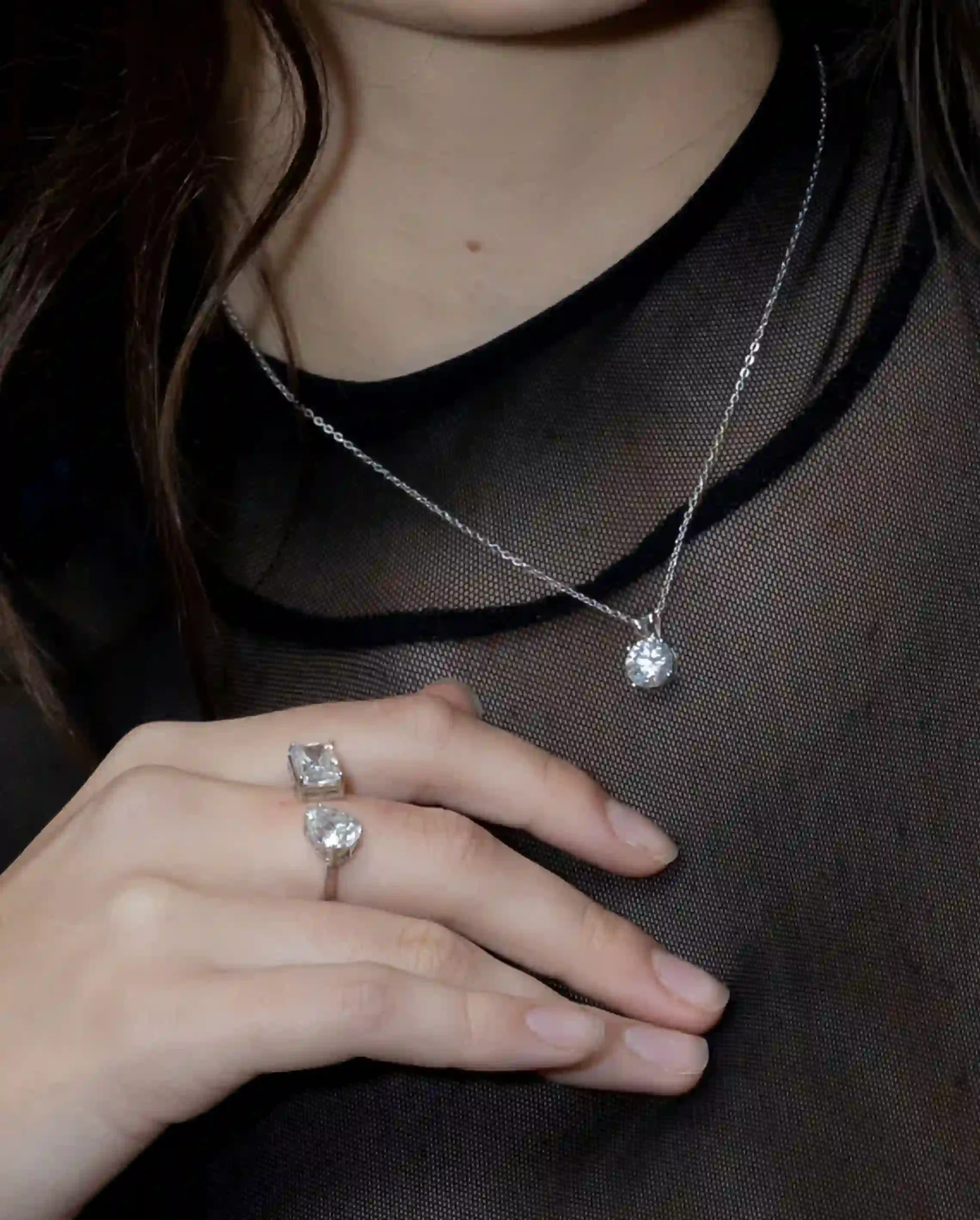 Crowned by a flawless 2-carat love-grown stone, this necklace is a masterclass in modern majesty. Its lines are pure, its presence undeniable — the kind of elegance that doesn’t whisper, doesn’t shout, but simply is.